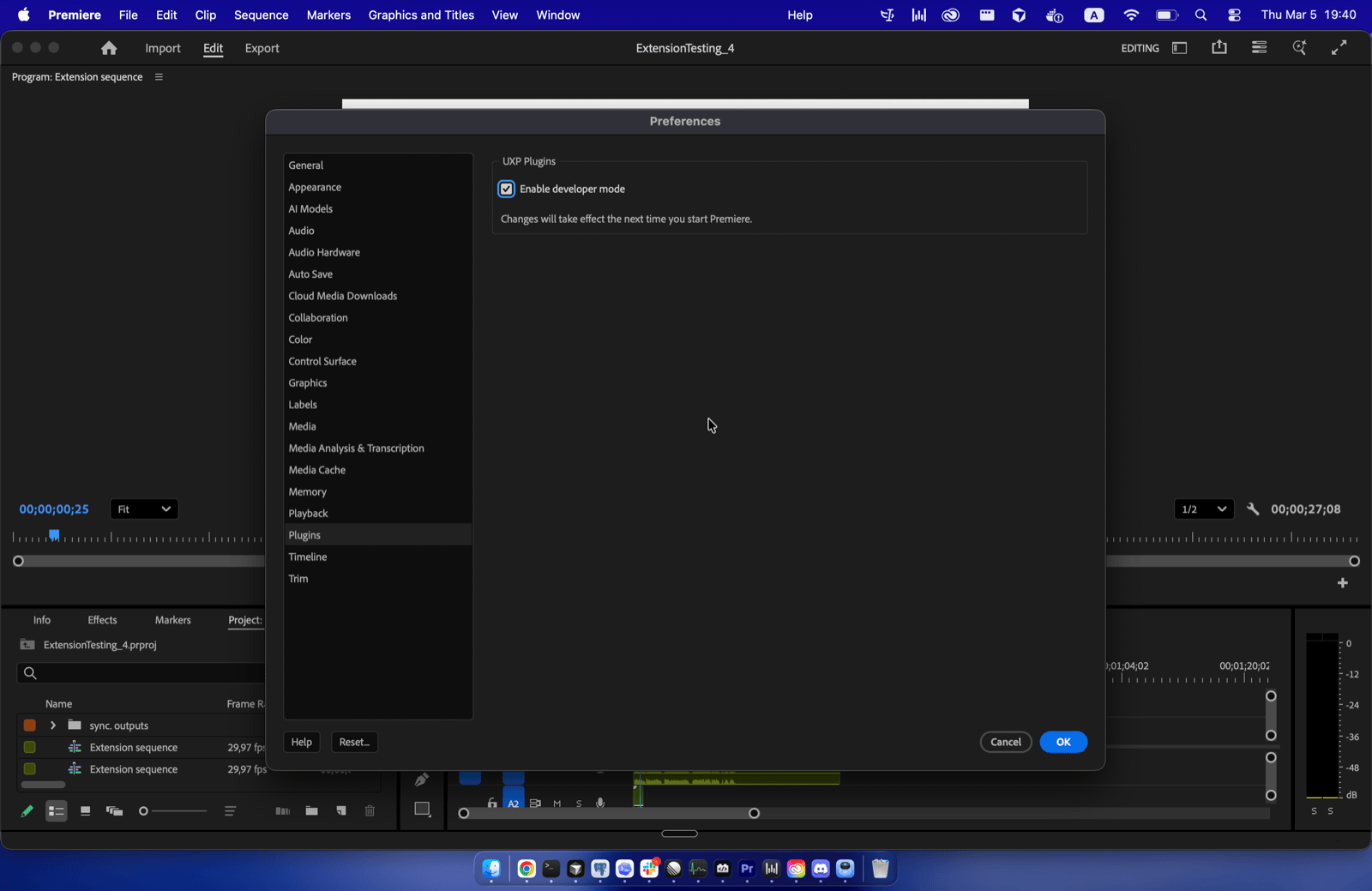In some cases, Premiere Pro needs plugin loading to be enabled in its settings. This can happen even with Adobe Marketplace installs. If you installed the plugin but don’t see it under Window > Extensions, follow these steps:
